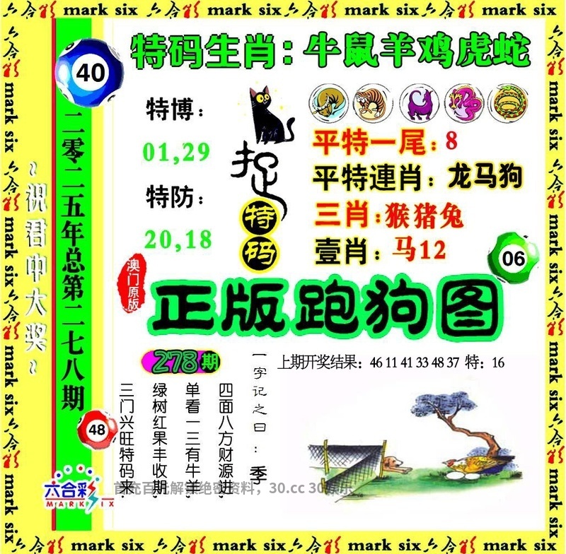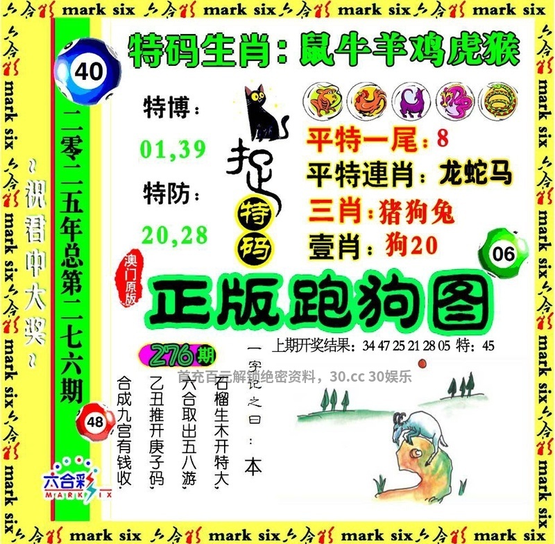 276期【⑨肖中特】:羊狗鼠猪蛇虎牛兔